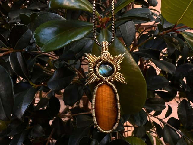 🌞TetraSol Talisman is a handcrafted union of Tiger’s Eye and Labradorite, framed by four radiant decorations that represent the power of the number 4 stability, protection, and the four cardinal directions. Labradorite opens intuition and inner sight, while Tiger’s Eye strengthens courage, focus, and grounded action. Together, they create a talisman for clarity and guided movement.